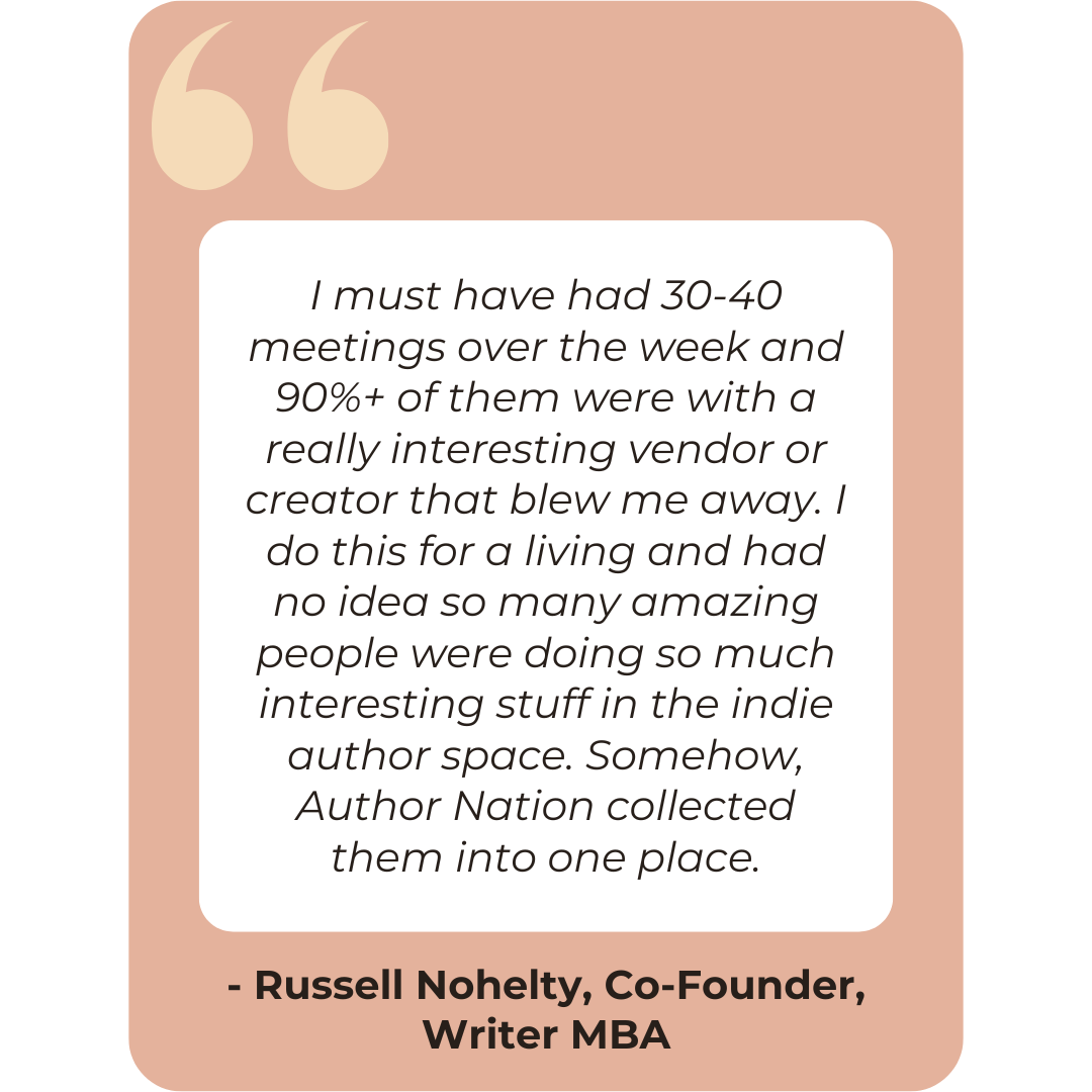 We take this stance seriously to protect authors from exploitative practices and to ensure that vendors and publishers who invest in exhibiting at Author Nation connect with their ideal audience. If your company provides real value to indie authors, we strongly encourage you to highlight Author Nation authors who already use your services as referrals—this helps us confirm you’re in the right place and builds immediate trust with our community.