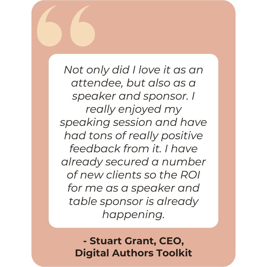 Authors report excellent connection opportunities with vendors, with multiple dedicated networking times throughout the event. Our floor plan and schedule are specifically designed to maximize meaningful interactions with potential clients on vendor day and all week.